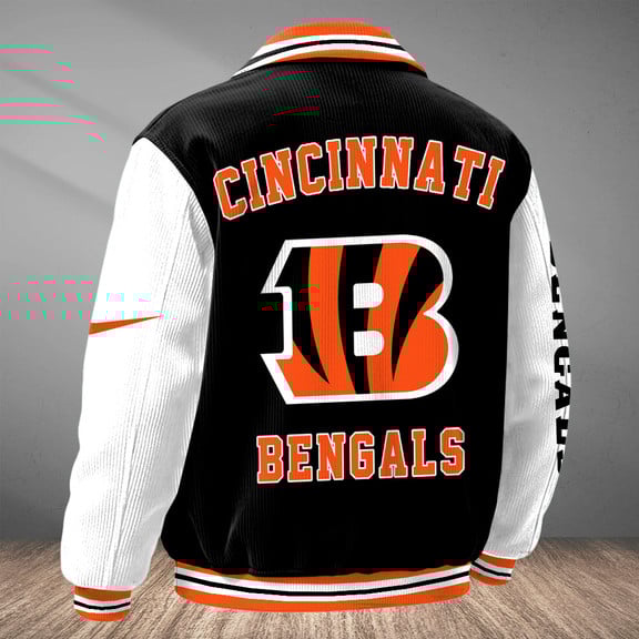 Stay warm and stylish with this Custom Varsity Bomber Jacket, designed with a classic two-tone look and sporty details. The front features a personalized name option, while the back highlights bold graphic prints for a standout appearance.